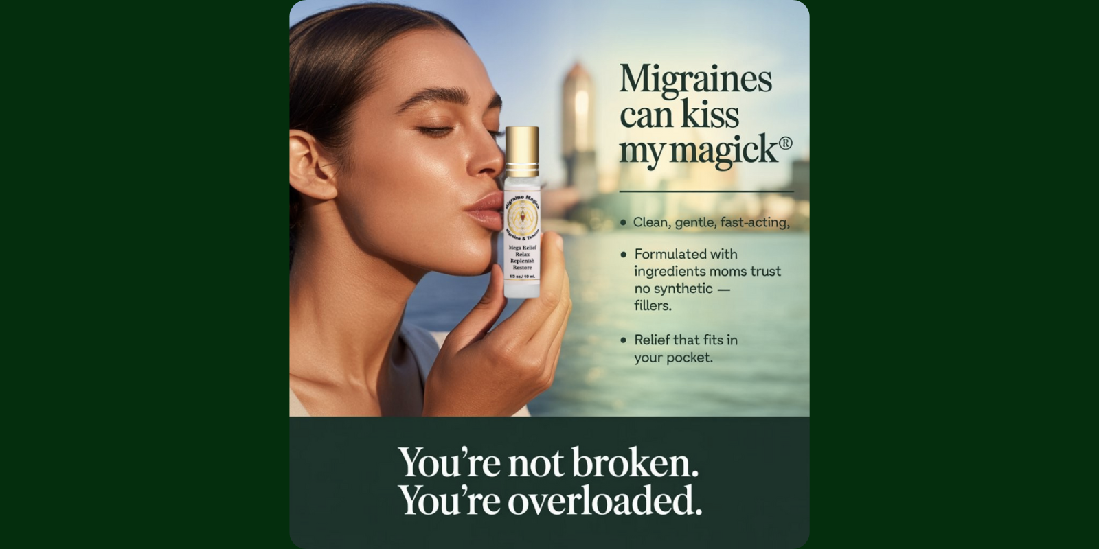 For the woman who carries the world and pays for it in migraine. This isn't just a roll-on. It's a Bio-Spiritual Neurobotanical Ritual